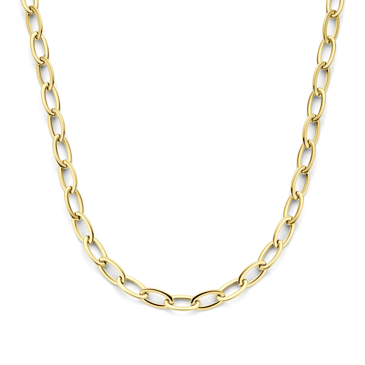 14k Geelgouden collier met een draaglengte van 45cm en een schakelbreedte van 10.5mm. Uitgevoerd met karabijnsluiting.
