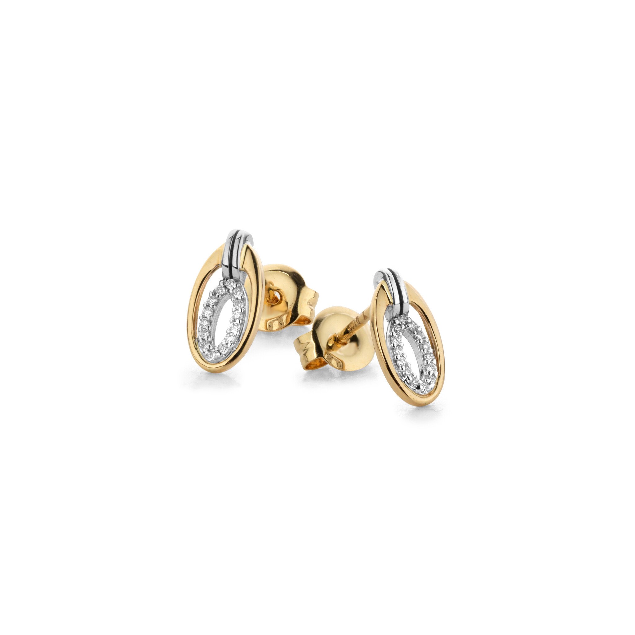 14 karaat geelgouden ovale oorstekers met diamant - 0,05ct.