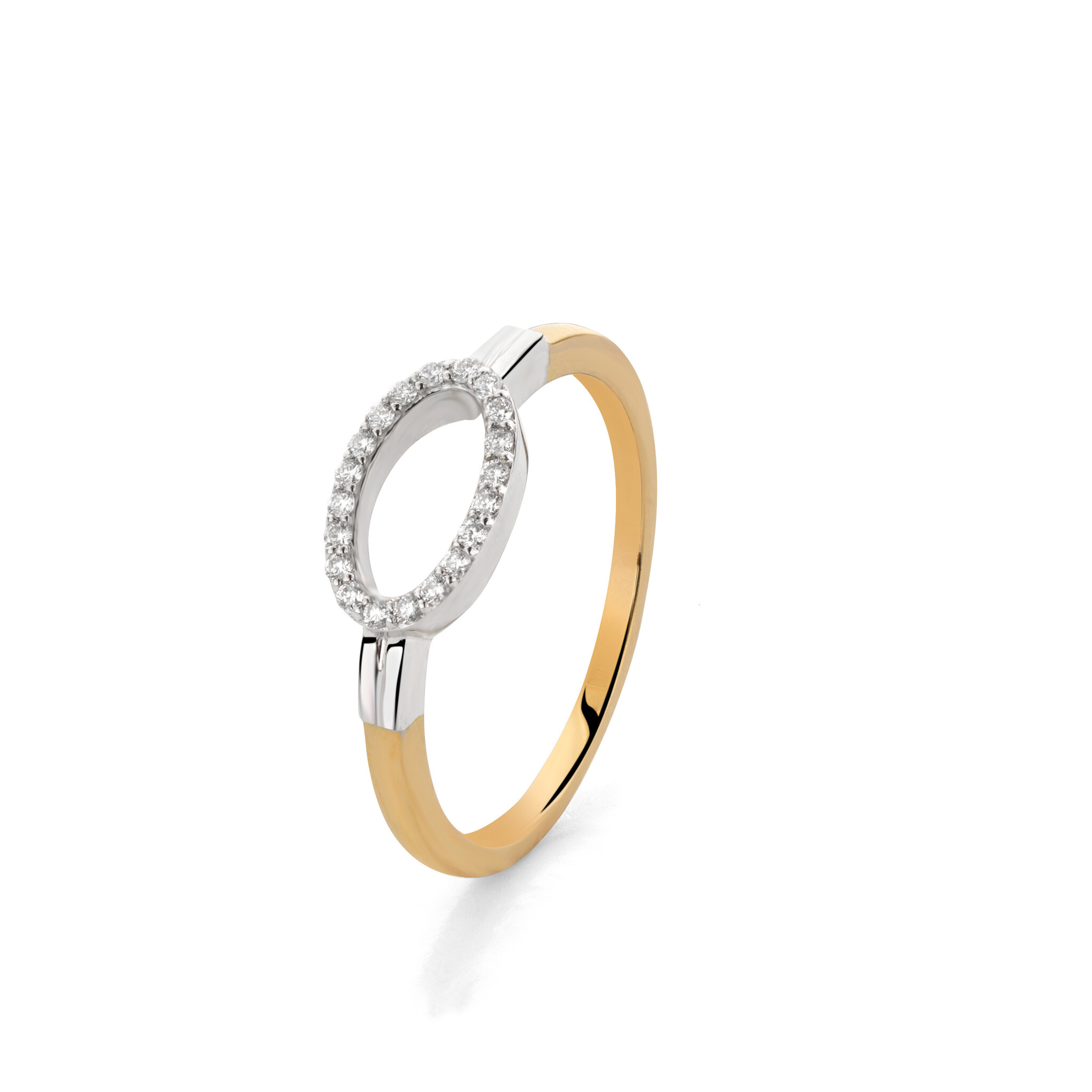 14 karaat geelgouden ovale ring met diamant - 0,11 ct