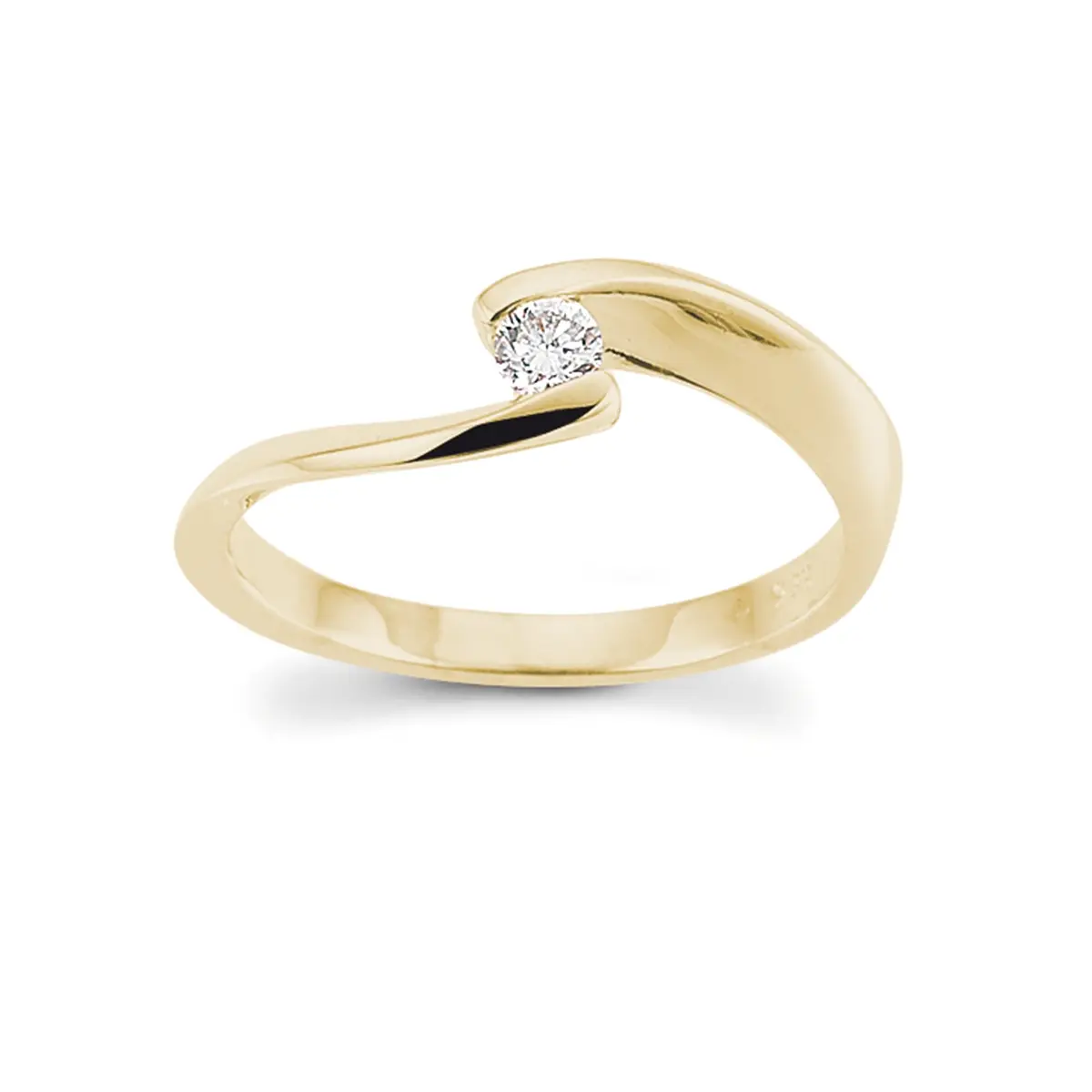 De gouden ring is onderdeel van de collectie Solitair, waarbij de diamant centraal staat. De ring is zowel rechts als links te dragen.