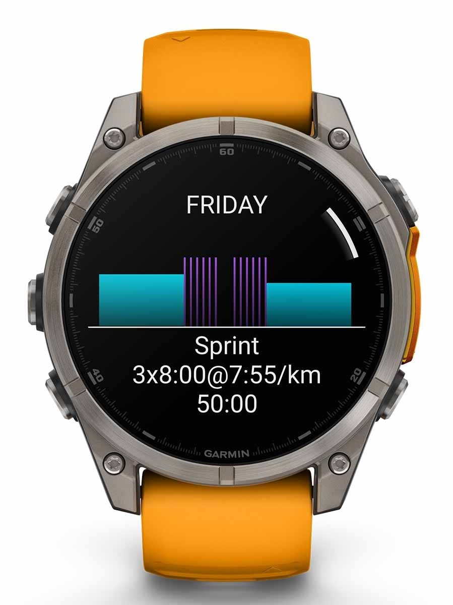De horlogekast van de Garmin Fenix 8 Sapphire AMOLED (43mm) is gemaakt van kunststof. De bezel (lunette) is gemaakt van titanium. Dankzij de vele voorgeladen activiteitenprofielen voor tal van sporten houdt dit horloge nauwkeurig jouw prestaties en workouts bij. Ook geeft het horloge jou advies voor het tempo, pauzes en rondes van hardloopsessies/intervaltrainingen.