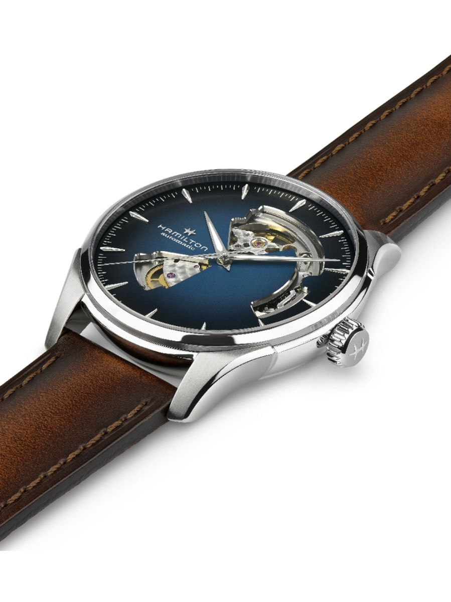 Dankzij het ontwerp van de nieuwe Hamilton Jazzmaster Open Heart wordt het bijhouden van de tijd een echt fluitje van een cent. Een blik op de wijzerplaat van het horloge laat een deel van het Zwitserse automatische uurwerk in actie zien - maar niet alles. Sommige dingen kunnen aan de verbeelding worden overgelaten - vooral wanneer ze gehuld gaan in weelderige kwaliteitsmaterialen met verfijnde designdetails.