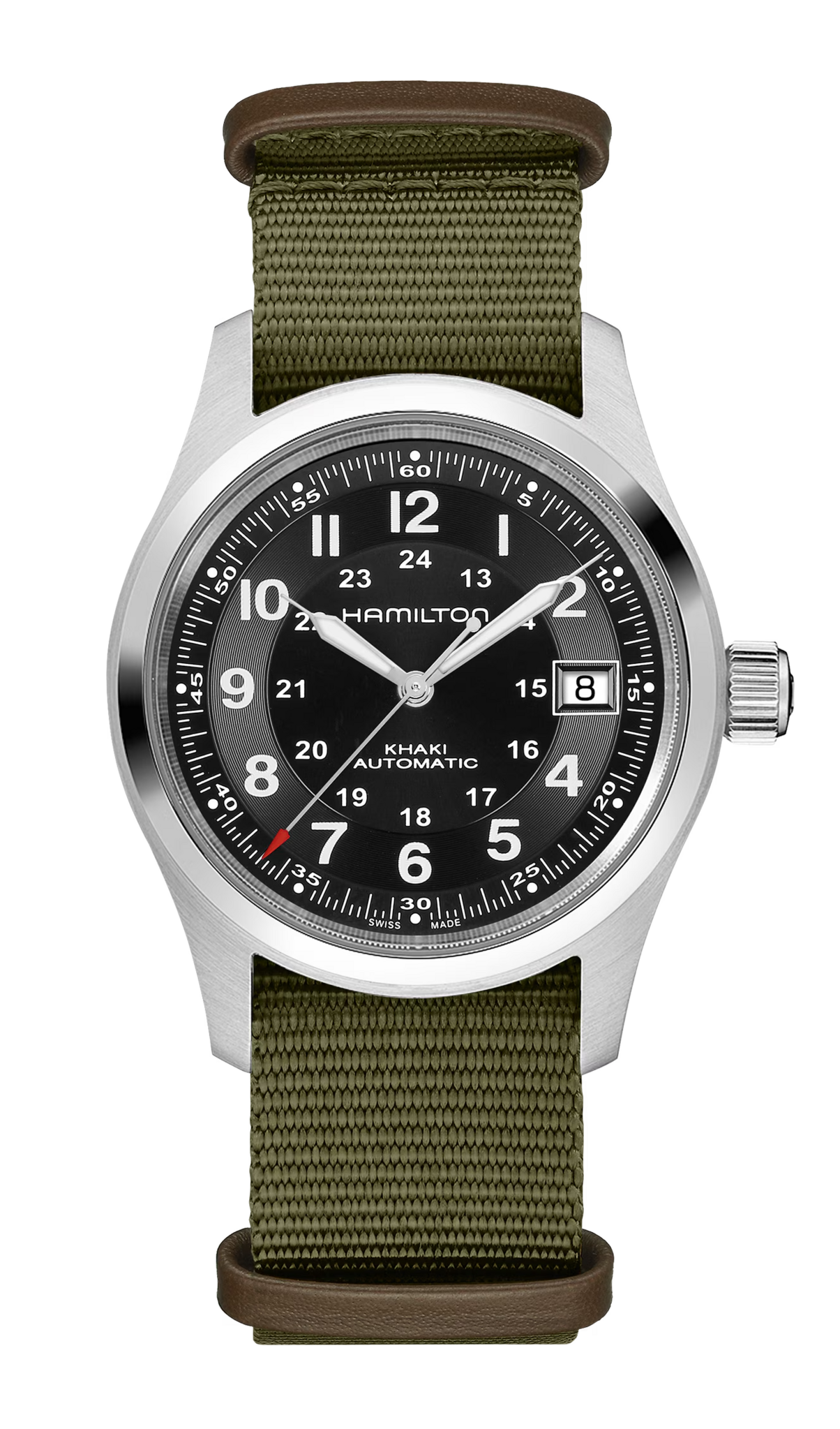 In het hart van dit model tikt het betrouwbare automatische H-10 uurwerk, goed voor een indrukwekkende gangreserve van 80 uur. Zo blijft het horloge ook in het weekend moeiteloos doorlopen. De soepel zittende canvas band geeft het geheel een authentieke, veldklare uitstraling, terwijl het saffierglas bescherming biedt tegen krassen en dagelijkse uitdagingen.